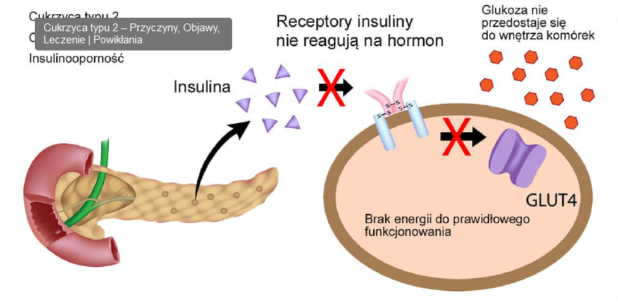 Jeżeli spożywamy zbyt dużą ilość węglowodanów lub spożywamy je zbyt często i nasz organizm nie jest w stanie poradzić sobie nadmiarem glukozy we krwi oraz komórkach. W tym celu wydzielana jest duża ilość insuliny, łączy się z receptorem na komórce i wpuszcza glukozę do jej wnętrza. Jeżeli w komórkach jest zbyt dużo glukozy, to próbują one się bronić przed jej nadmiarem i zmniejszają ilość receptorów na ich powierzchni, a następnie pozbywają się ich receptorów całkowicie. Sytuacja ta powoduje, że mamy zbyt duży poziom glukozy we krwi oraz wysoki poziom insuliny. Ponieważ trzustka cały czas dostaje sygnały, że pomimo wysokiego poziomu insuliny nie następuje spadek cukru, wytwarza jej jeszcze więcej. Stan ten nazywany jest heiperglikemią oraz hiperinsulinemią i prowadzi do insulinooporności.