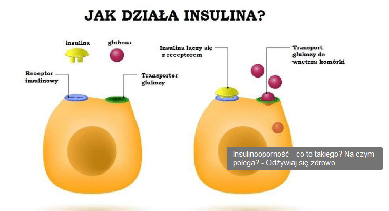 Trawienie węglowodanów zaczyna się już w jamie ustnej i dlatego glukoza szybko przenika do krwi. Kiedy wzrasta jej poziom, zadaniem insuliny jest wpuszczenie jej do komórki. Ponieważ glukoza dobrze rozpuszcza się w wodzie, a błony komórkowe zbudowane są z tłuszczu i białek, insulina ma problem, aby przeniknąć do komórki. Dlatego też na powierzchni każdej komórki znajdują się receptory insulinowe (zamek). Kiedy insulina (klucz) dotrze do receptora, otwiera się kanał dla cząsteczki glukozy i w wnika ona do komórki.